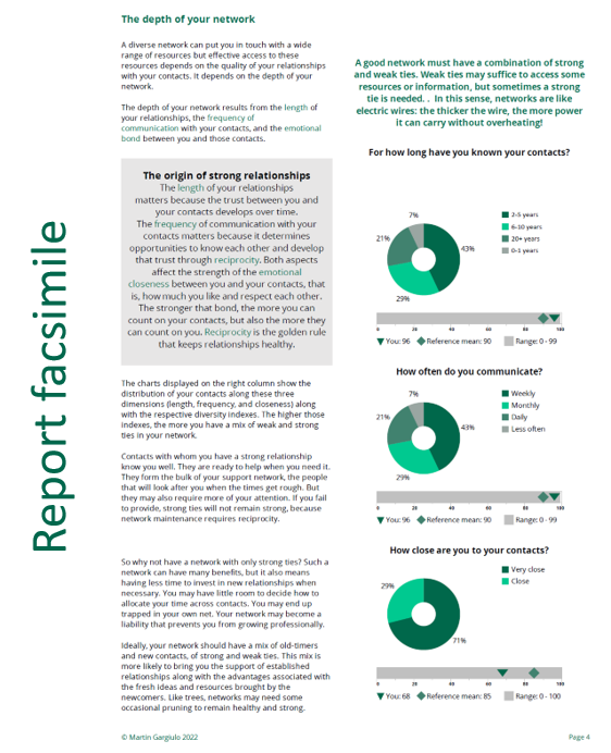 Generate customized reports comparing your core network with those of other executives around the world